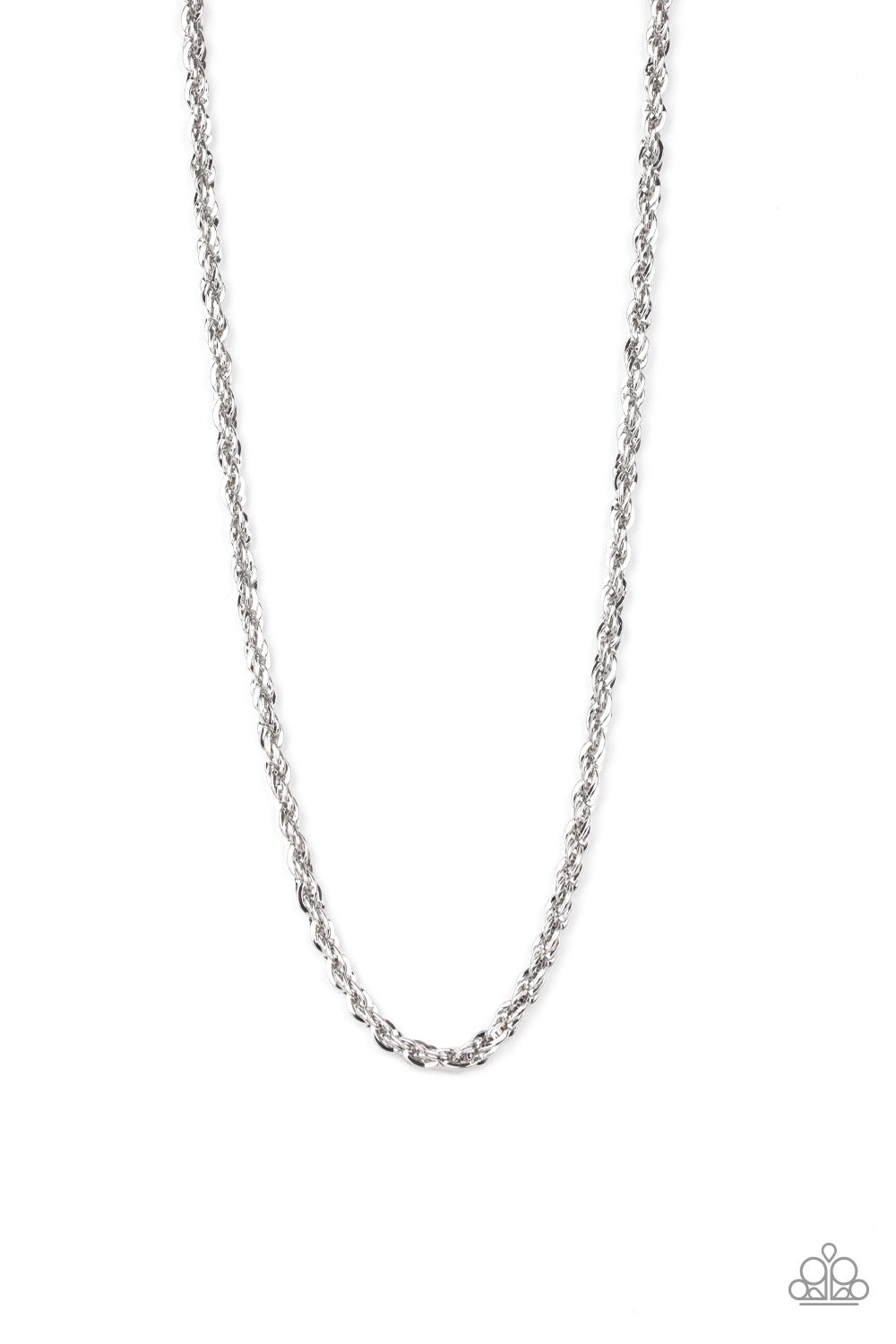 Brushed in a high-sheen shimmer, a silver double rope chain drapes across the chest for a classically upscale style. Features an adjustable clasp closure.