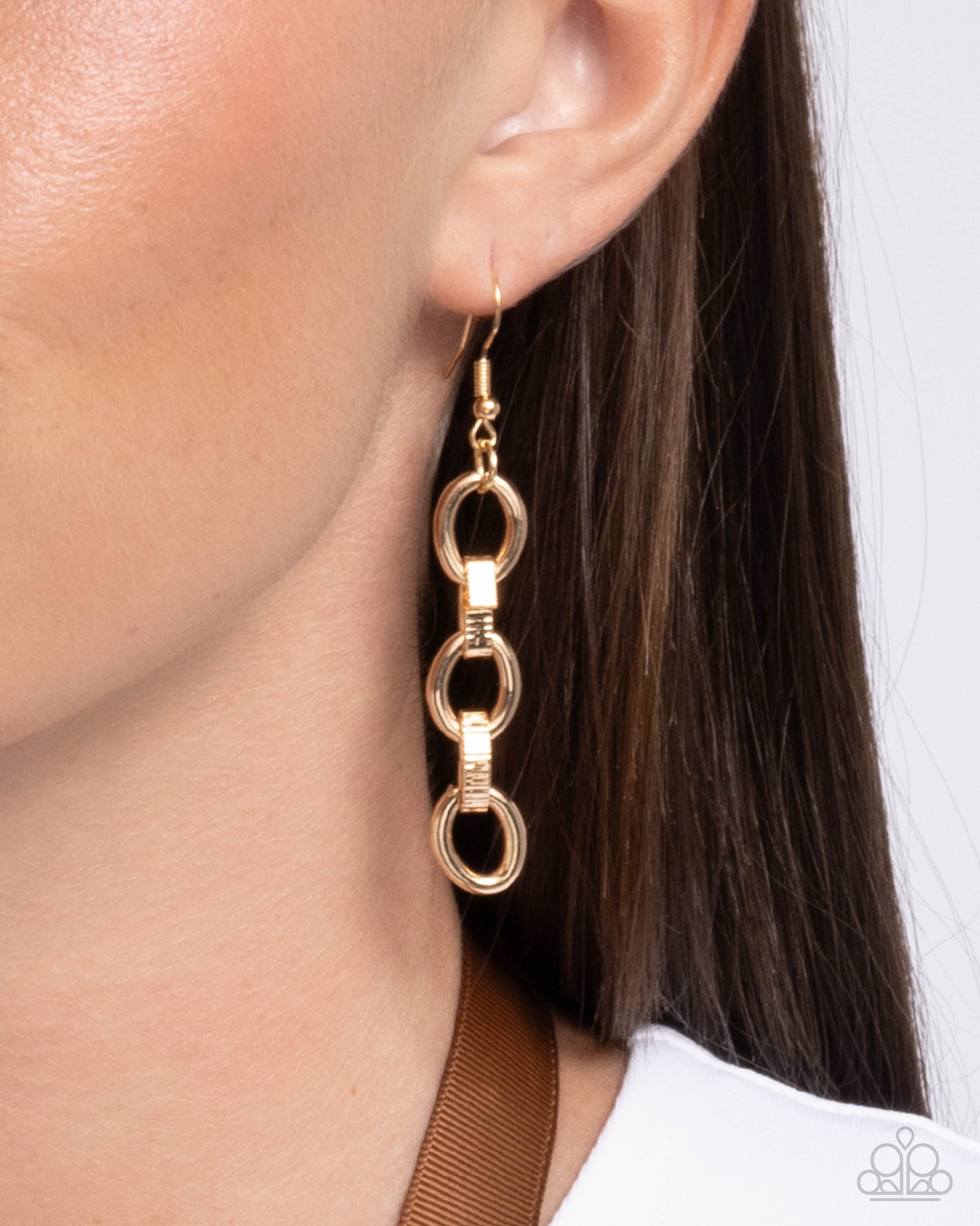 Attached to a brown ribbon, a gold cable link chain alternates with textured oval links down the neckline for a refined, rebellious display. An explosion of colorful and UV-splashed gems and rhinestones in varying cuts and facets collects at the bottom of the chain for a tantalizing finish. Features a ribbon that can be tied at your desired length.