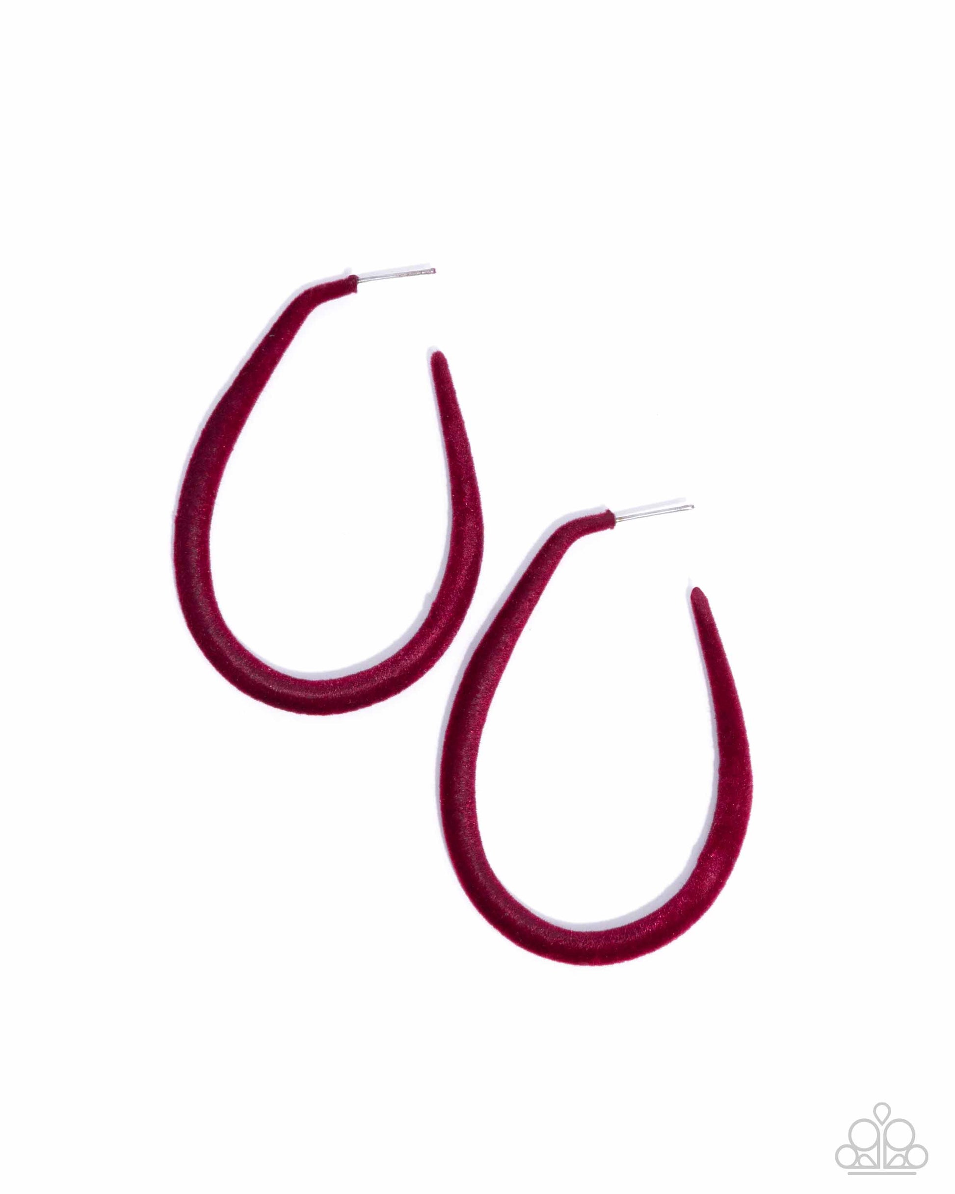 Encased in a playful felt, red teardrop hoops loop and curl below the ear for an endearing, equal display. Earring attaches to a standard post fitting. Hoop measures approximately 1 3/4" in diameter.